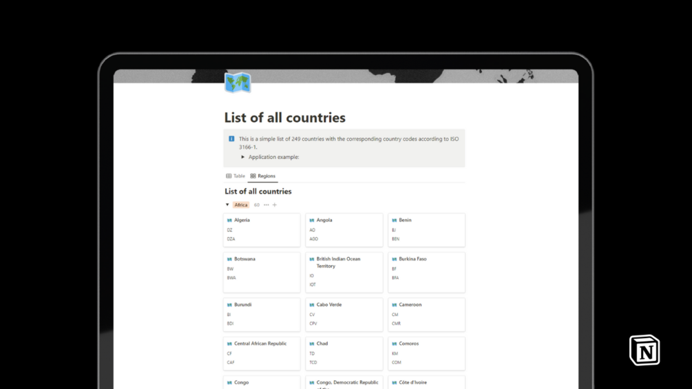 Notion list of all countries